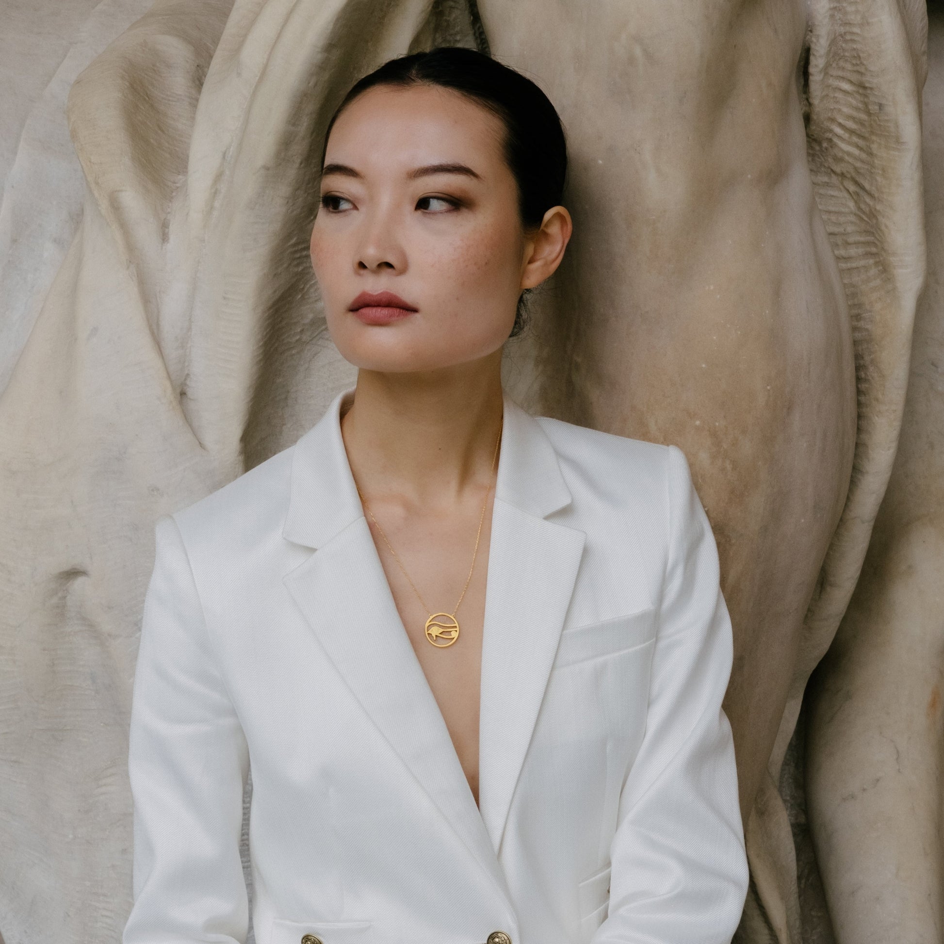 The eye of Horus (udjat) was depicted as the right or left eye. Although they both represented the all-seeing eye of the sacred Horus falcon, the left eye represented the moon and the right eye represented the sun.